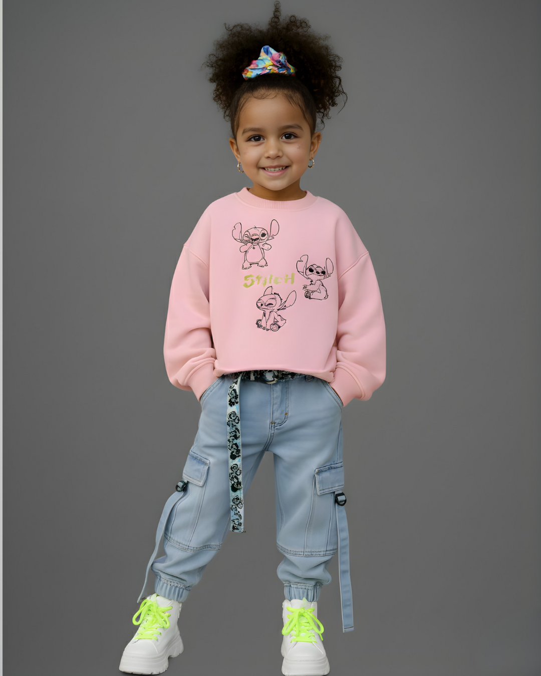 سويتشيرت بطبعة ثلاث ستيتش – بينك