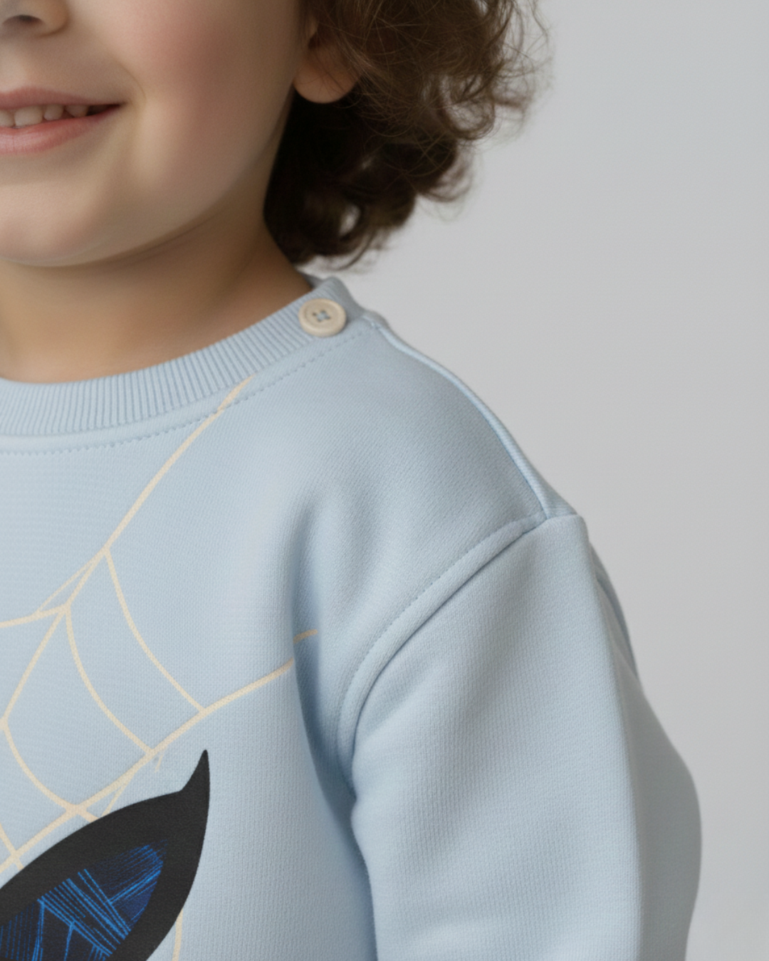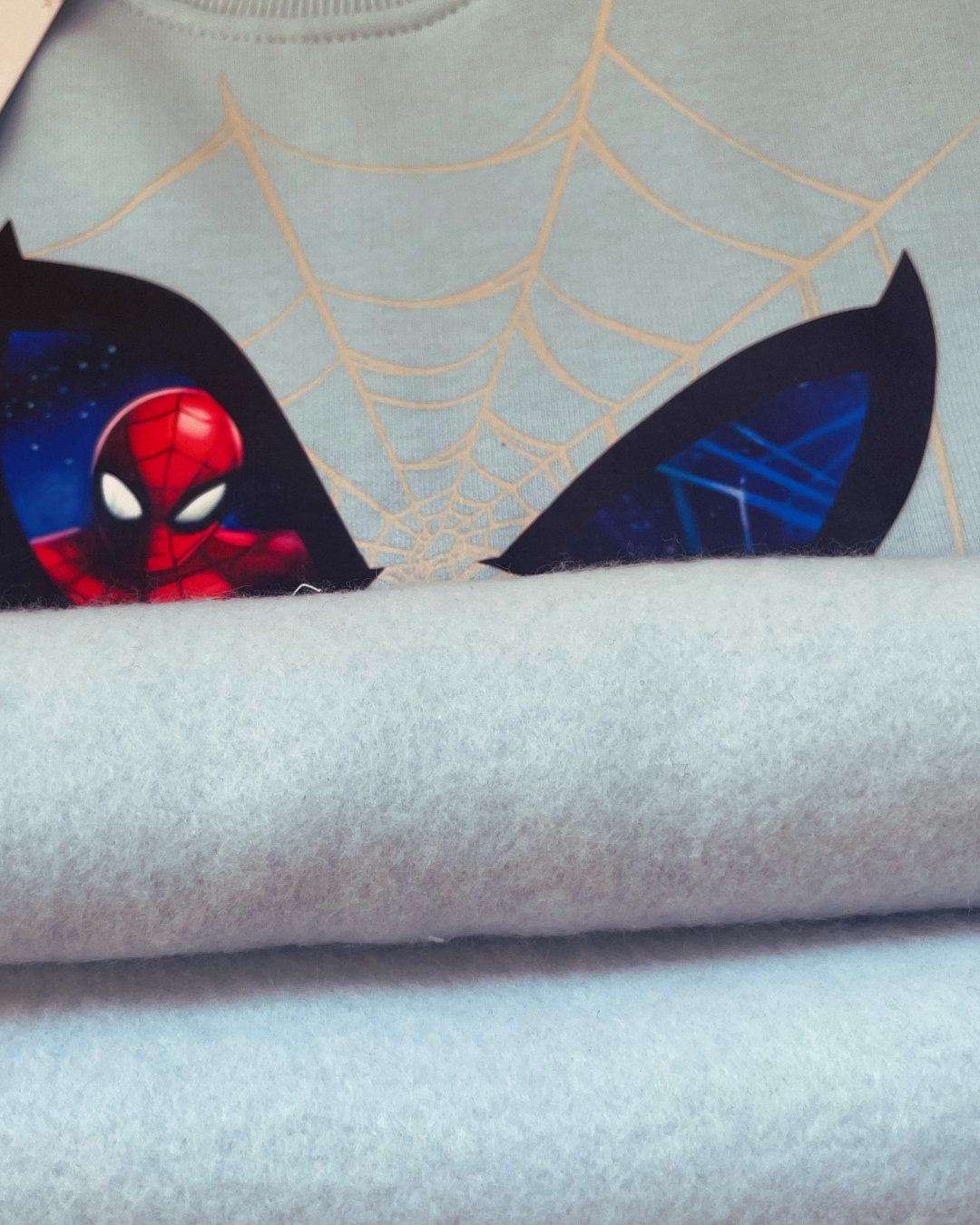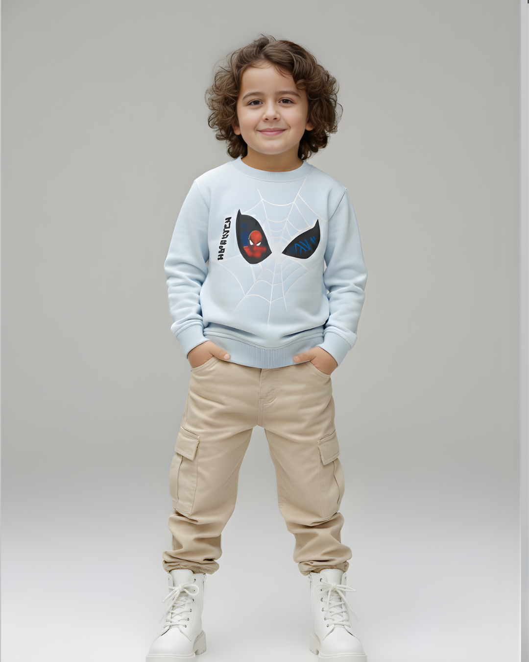 السويت شيرت البيبي بلو Spiderman power بيناسب روح المغامرة عندهم وبيحافظ على راحتهم في كل مهمة ✨